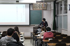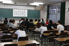 高校生活での体験を作文に書き、各クラスで発表を行います。