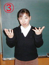 *手話の語順と日本語の語順は少々異なります。英会話を覚えるときのように、日本語とは違う言語として手話を覚えて下さい。また、手話は表情が大切です。鏡を見て練習しましょう。