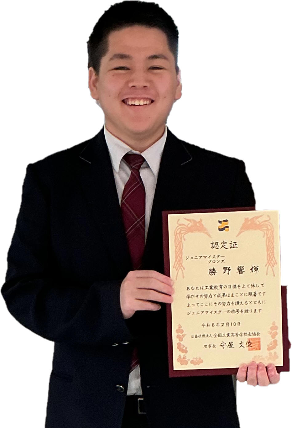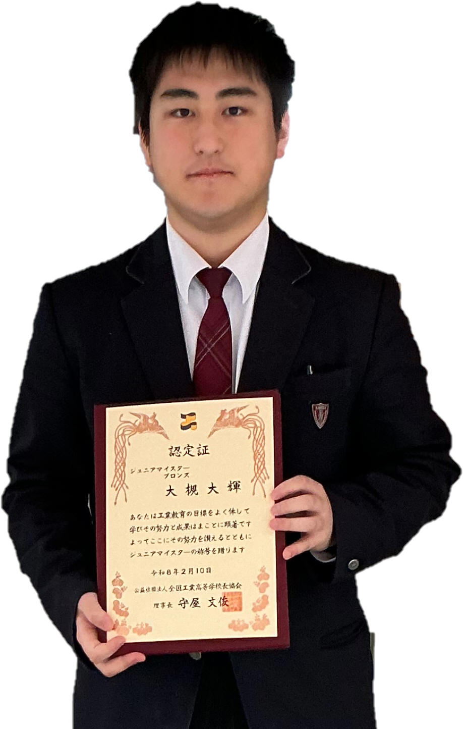 | 全国で工業を学ぶ学科に属する生徒を対象に、在学中に身につけた知識・技術・技能が評価される ジュニアマイスター顕彰制度においてテクニカル工学系列3年生、7名が認定されました。 認定は資格・検定の難易度や取得数に応じて特別表彰・ゴールド・シルバー・ブロンズに分類されます。 |