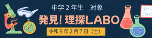 【受検生・保護者等の皆様へ】中学3年生対象「発見!理探LABO」を実施します。(PDF)