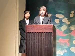 ![]() 総合司会の東海林さんと卒業生の谷口さん |