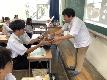 今年度も2年生家庭基礎の授業できょうと食いく先生・大槻喜宏先生(大槻菓舗・与謝野町)をお招きし、「和菓子を学ぼう」の講義が始まりました。10月10日(金)には2年4組、10月14日(火)には2年1組の生徒が、和菓子の歴史、種類、四季折々の和菓子などについて学びました。