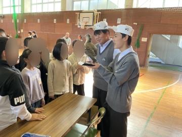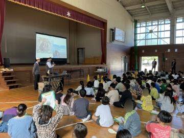 講演では、本校生徒が自らの体験をもとに、冠島の自然環境や調査で行っている活動内容について説明しました。また、講師である教員からは、オオミズナギドリの生態を通して自然と人との関わりを考える話があり、児童の皆さんは環境保全や地域の自然への関心を一層深める機会となりました。