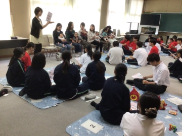 生徒達はこの授業をとても楽しみにしており、お父さんやお母さんに抱っこされた赤ちゃんが教室に入って来られた途端、「かわいいー!」の大歓声が上がりました。