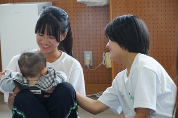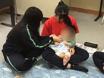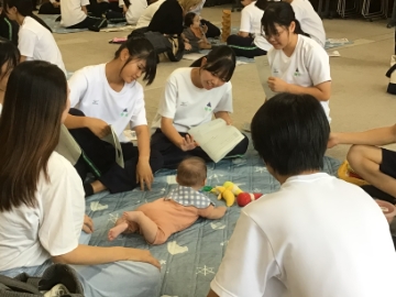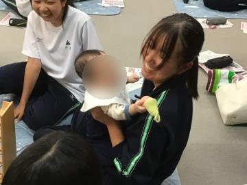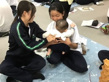 普段、赤ちゃんとふれあう機会が少ない生徒が大半で、最初はぎこちない様子でしたが、おもちゃで遊んだり、抱っこさせていただいたりする中で、赤ちゃんと接することに少しずつ自信が持てた様子でした。