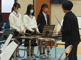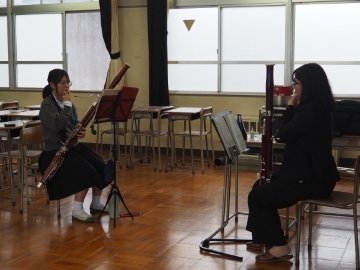 「風の舞」、「サウンドオブミュージック(フレックス版)」の曲を演奏していただいた後、パートごとに分かれて練習方法や演奏のコツを教えてもらいました!教わったことを糧に、これからも日々の練習を頑張っていきます!