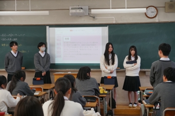 ![]() 2年生は参加中学生に中間発表を聞いてもらいます  |
