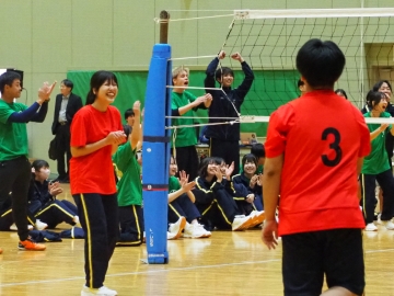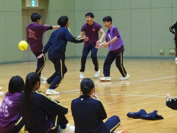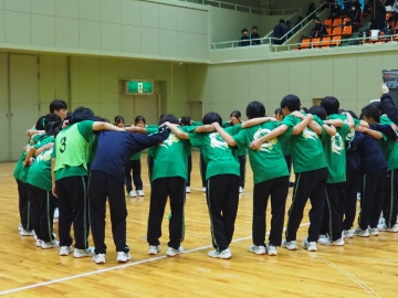 待ちに待った球技大会が、学校の体育館(3年生)と舞鶴文化公園体育館(1・2年生)で実施されました。球技大会に向けて、こっそり練習をしている生徒たちもいたようです。当日は、気温が上がらなかったこともあり、ジャージを着ている生徒も多かったです。しかし、ジャージの下には、おそろいの団Tシャツ!