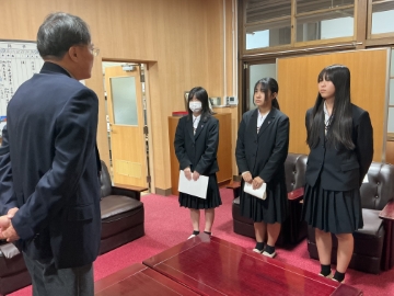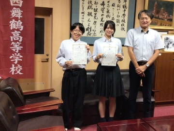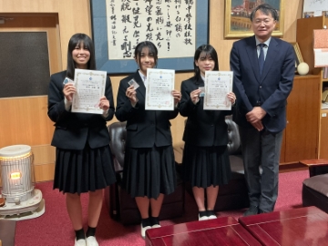 9月12日(金)には3年生 安永さんと井上さんに、11月18日(火)には3年生 西野さん、2年生 上西さん、1年生 船垣さんに、それぞれ校長先生から認定証を授与していただきました。