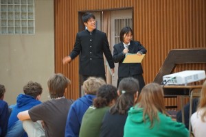 ![]() 校長先生も英語で挨拶 |