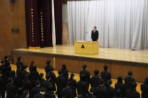元気なみなさんの姿を見て、うれしく思っています。新学期を迎えるにあたり、今一度生活態度を見直しましょう。頭髪やピアスの加工を控え、制服を正しく着用するなど、身だしなみを整えてください。また、盗難防止のため貴重品管理を徹底し、自分を律して臨みましょう。3学期はあっという間に終わりますが、よりよく生きる努力をして、今年も頑張っていきましょう。
