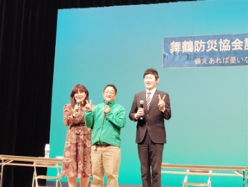 防災講演会として安田大サーカスの団長安田さんのお話および舞鶴市長を交えたトークセッションが行われ、防災に関して理解を深めることができました。