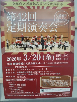令和8年3月20日(金祝)に、今年も西高文化部の祭典「西高EXPO2026」と「吹奏楽部第42回定期演奏会」を開催します!