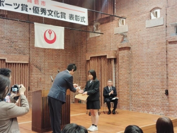 本校3年生 上林さんが、令和7年度舞鶴市優秀文化賞を受賞しました。