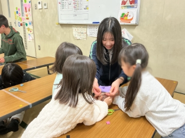 ![]() 「ペットボトル空気砲」を作る材料を配ります |