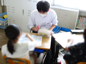 毎年夏休みに、明倫小学校の児童への学習支援ボランティアを行っています。今年度は21名の生徒が参加予定です。初回の24日(月)は11名が参加しました。事前に教材研究を行い、しっかり準備をして臨みました。明倫小学校の児童や先生方からいただいた感謝の言葉を励みに、有意義な活動ができたと思います。将来教師を目指す生徒も多く、今回のボランティアを通して、教師になりたいという思いが一層強くなったようです。24日(月)から28日(金)まで毎日10名程度の生徒が活動します。