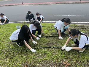 先月の第1回花壇再生プロジェクトでも草抜きをしたのですが、さらに雑草が生い茂っていました。今回はこの草抜きからスタートです。1時間程度かかりながら、皆で分担して作業に励みました。