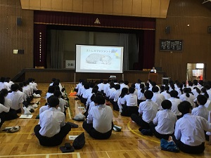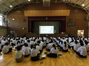 昨年まではリモートで行っていましたが、今年は4年ぶりに体育館で実施しました。暑さが気になる時期になってきましたが、スポットクーラーを4台稼働し、暑さをそれほど感じることなく実施することができました。