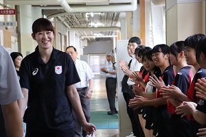 パリ五輪女子バレーの日本代表として活躍された本校の卒業生、井上愛里沙選手が来校されました。
