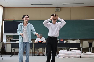 ペアになって、どう発展していくか分からない、未知の世界を楽しみましょう。現実世界ではできませんが、演劇の世界として今、この瞬間、ある程度は「無責任に」思った言葉を返していきましょう。