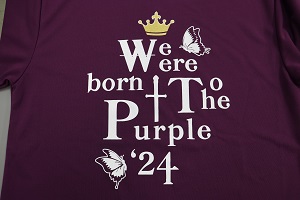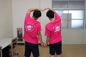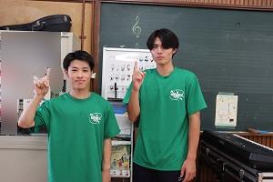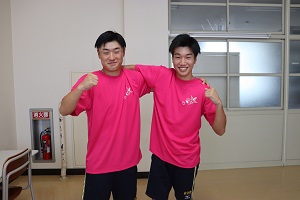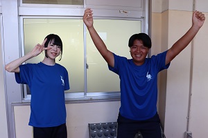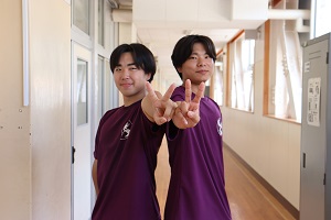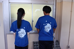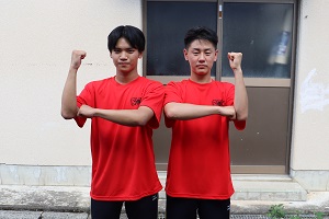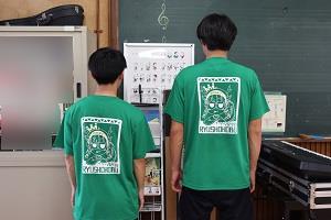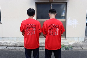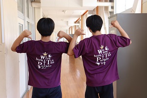 西舞鶴高校の体育祭は5団に分かれて競います。今回は団ごとに3年生がデザインをしたTシャツを紹介します。着用しているのは団長と副団長です。