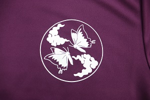 ・紫は高貴で王位の色とされているので王冠をデザインしました。また、蝶々で美しさと華やかさを表現することで絢爛な雰囲気に仕上げました。
