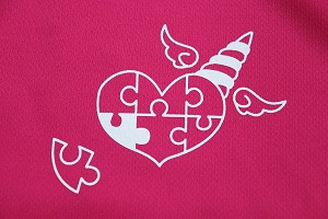 ・表面は、ハマっていないパズルのピースが自分自身で、あなたがハマることで桃団は完成する!全員で桃団!という意味が込められています。団テーマが「桃源郷」ということから架空の動物「ペガサス」をモチーフにしました。