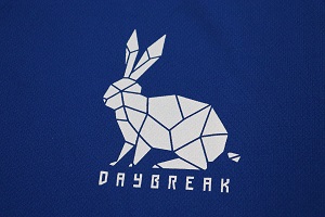 ・表面は月にいるウサギをイメージしました。理数探究科の3年生が団を仕切っているので、ウサギを幾何学模様にして理系感をアピール♪ウサギの下に書いてある「DAYBREAK」は「夜明け」という意味で、団テーマの「黎明」を英語で表しました。
