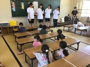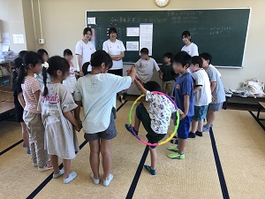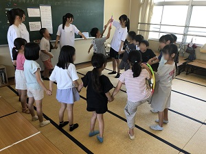 2年生2名、1年生2名が中筋地域児童クラブへボランティアに行きました。事前に自分たちで新聞、フラフープ、折り紙を使った遊びを考え、15名の子ども達と楽しく遊びました。どの遊びも子ども達に人気で、あっという間の90分間でした。次は冬休みに行く予定です。