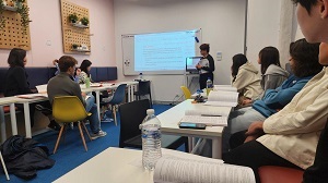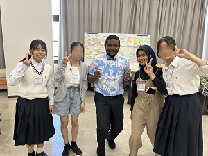 3泊4日で、京都市にて行われた京都府主催の「ハイブリッド型英語研修」に参加し、バーチャル異文化交流コースを選択。オンラインで海外とつながったり、対面で留学生等と協働学習を行ったりしました。 |