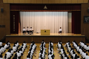 生徒総会において、令和6年度後期から令和7年度前期生徒会本部役員の立会演説が行われました。