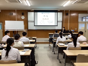 本日、3年生の4年制大学看護学部および看護学校・看護短大志望者を対象とした看護ガイダンスを実施しました。京都府立医科大学附属北部医療センターの方が来校され、地域医療の現状と課題などについてお話をしていただきました。生徒は京都府北部地域の地域医療の現状と課題や「包括ケアシステム」の概要、そして今後の医療職・看護職に求められる資質に関して理解を深めることができました。