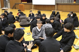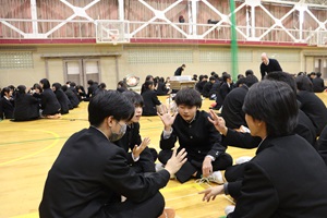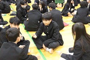 その後、1年生全員で “Never Have I Ever”というゲームをしました。4~5人のグループで、順番に「自分がしたことのないこと」を言っていきます。グループ内にしたことがある人がいれば、その人は1ポイント獲得。5ポイント先取で勝利です。ゲームが進むうち、友だちの意外な事実を発見していました。