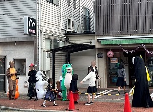 仮装をしたまま商店街の清掃活動