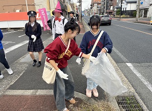 2年生の2人は手際よくゴミを集めます |
