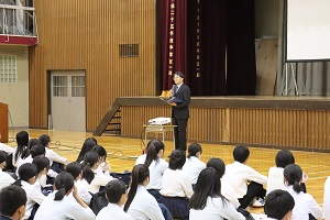 中学生と笑顔で交流しました