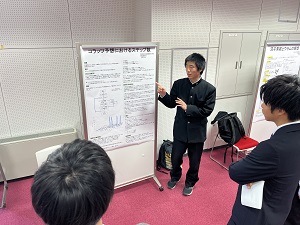 当日は約130名の高校生が課題研究の取組状況をポスター発表の形式で報告しました。各班で行っている専門的な研究内容について、他校でも同じような取組をしていたり、全く新しい視点でアドバイスをいただいたりすることができて、大きな刺激を受けた生徒が多かったようです。