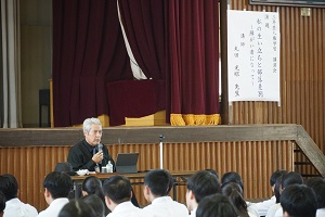 3年生の人権講演会を行いました。丸田 光昭 様に「私の生い立ちと部落差別~障がい者になって~」の演題で御講演いただきました。