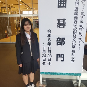囲碁・将棋部2年生の上林さんが参加し、近畿地方に加え、福井県、鳥取県、徳島県の高校生も加えた26名による女子個人戦の部で5位に入賞しました。惜しくも初戦で敗れましたが、その後は4連勝を収めました。
