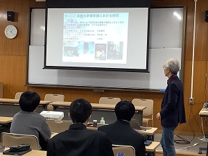 京都大学大学院理学研究科サイエンス連携探索センター(SACRA)の特任教授 有賀哲也様より、「特色入試制度」について説明していただきました。令和8年度大学入学者選抜から新たに設定される「女性募集枠」についての説明も受けました。