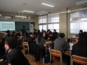 1年生を対象に財務省近畿財務局並びに舞鶴税務署から講師の方々をお招きし、財政・租税教育を実施しました。租税や財政の仕組みについて、わかりやすくパワーポイントを用いて説明していただきました。