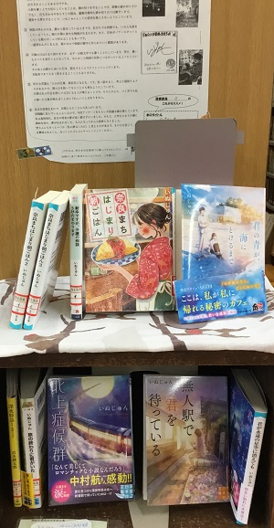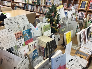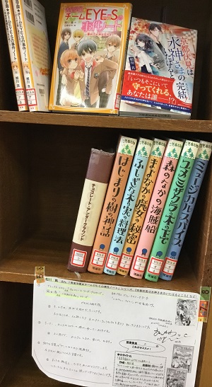 昨年度生徒作成POPの掲示(図書委員発案) |