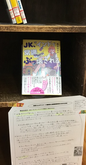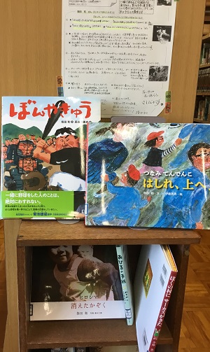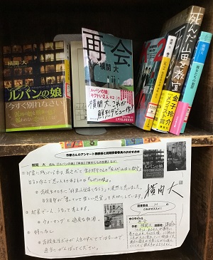 ①前期図書委員が夏に送った「好きな作家さんへのアンケート手紙」にお返事をくださった作家の方々10名の著作等を展示しています。