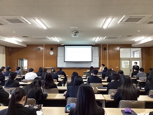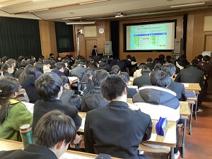 2年生の生徒を対象に進路別ガイダンスを実施しました。生徒たちは「国公立四大・短大」「私立四大・短大」「専門学校・就職・公務員」「看護学校」と4つの会場に分かれて今後の進路を決定するために必要な事柄などについて説明を受けました。