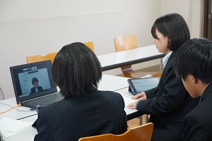 1年「はばたき」(総合的な探究の時間)の探究活動で「フェスの経済効果について」をテーマに取り組んでいるグループが、プレイバックフェス実行委員会の方にZoomでインタビューを行いました。初めての経験に戸惑いや緊張を感じているようでした。生徒たちは事前に考えていた質問やインタビュー内での対話を通して、新しい視点や知見を得ることができました。