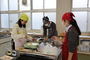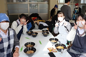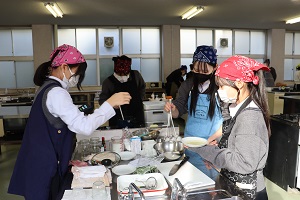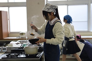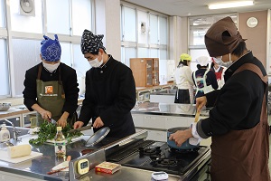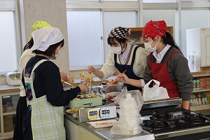 完成した料理を校内の先生にも食べていただき、様々な視点からアドバイスをいただきました。この活動を通して、地元の特産物を生徒自身が身をもって感じることが出来た良い機会となりました。