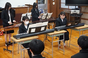 限られた授業の中でメンバーと話し合いながら構成や曲を考えるところからスタートした発表会。昼休みや放課後を使い、自主的に練習をしている姿も見られました。