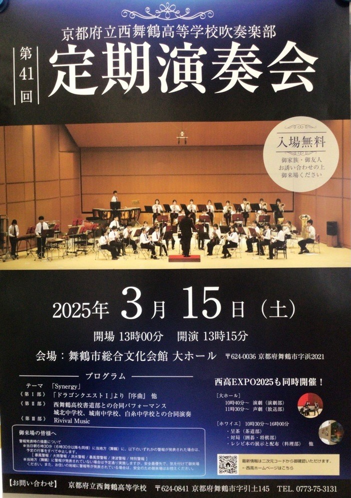 *同時に吹奏楽部による「第41回定期演奏会」も開催します。