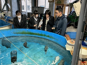 12月19日(火)、理数探究科生徒3名が福井県立大学 海洋生物資源学部 先端増養殖科学科に訪問しました。今年できたばかりのかつみキャンパスに訪れ、西辻光希先生に様々なお話を聞かせていただくとともに、施設の見学や学生さんとの交流もさせていただきました。