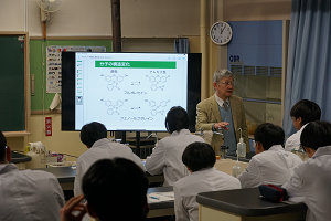 1月18日(木)京都大学との高大連携講座を実施しました。人間・環境学研究科から山本行男先生をお招きして「光る分子―合成して観察しよう―」というタイトルで実験・講義をしていただきました。